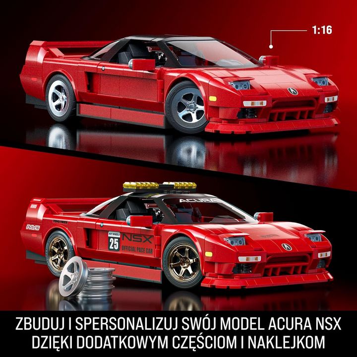 Co najważniejsze – jakością wykonania naprawdę nie ustępuje produktom LEGO, a pod niektórymi względami nawet je przewyższa. Klocki są bardzo dobrze dopasowane, montaż przebiega bez żadnych problemów, a w moim egzemplarzu nie brakowało ani jednego elementu. Wręcz przeciwnie – Mattel dorzuca kilka zapasowych części, które pozwalają na personalizację auta. Zestaw pozwala zmienić Acurę w Hondę, wymienić felgi na metalowe, a nawet dodać światła ostrzegawcze na dach, by uzyskać samochód bezpieczeństwa (safety car) znany z różnych serii wyścigowych.