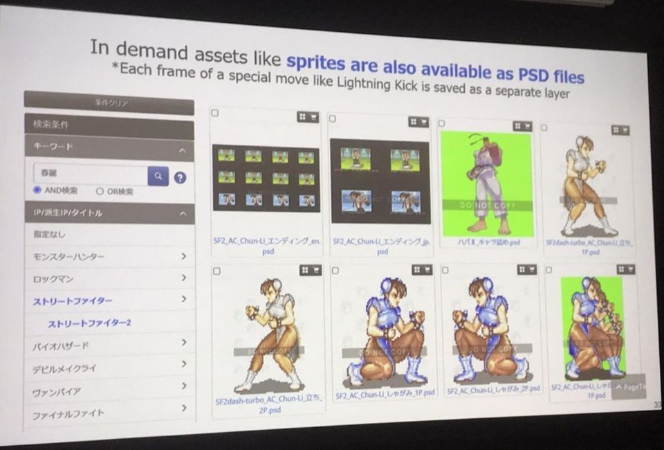 Podobnych działań podjęły się inne wspomniane spółki, w tym Capcom ze swoim systemem archiwów ilustracji (Capcom Illustrations Archives System, w skrócie CIAS) – pełnym sprite’ów, elementów interfejsu itd. Czasem może to być problematyczne, jak w przypadku automatów do gier, które zajmowały sporo miejsca w magazynach firmy Taito.