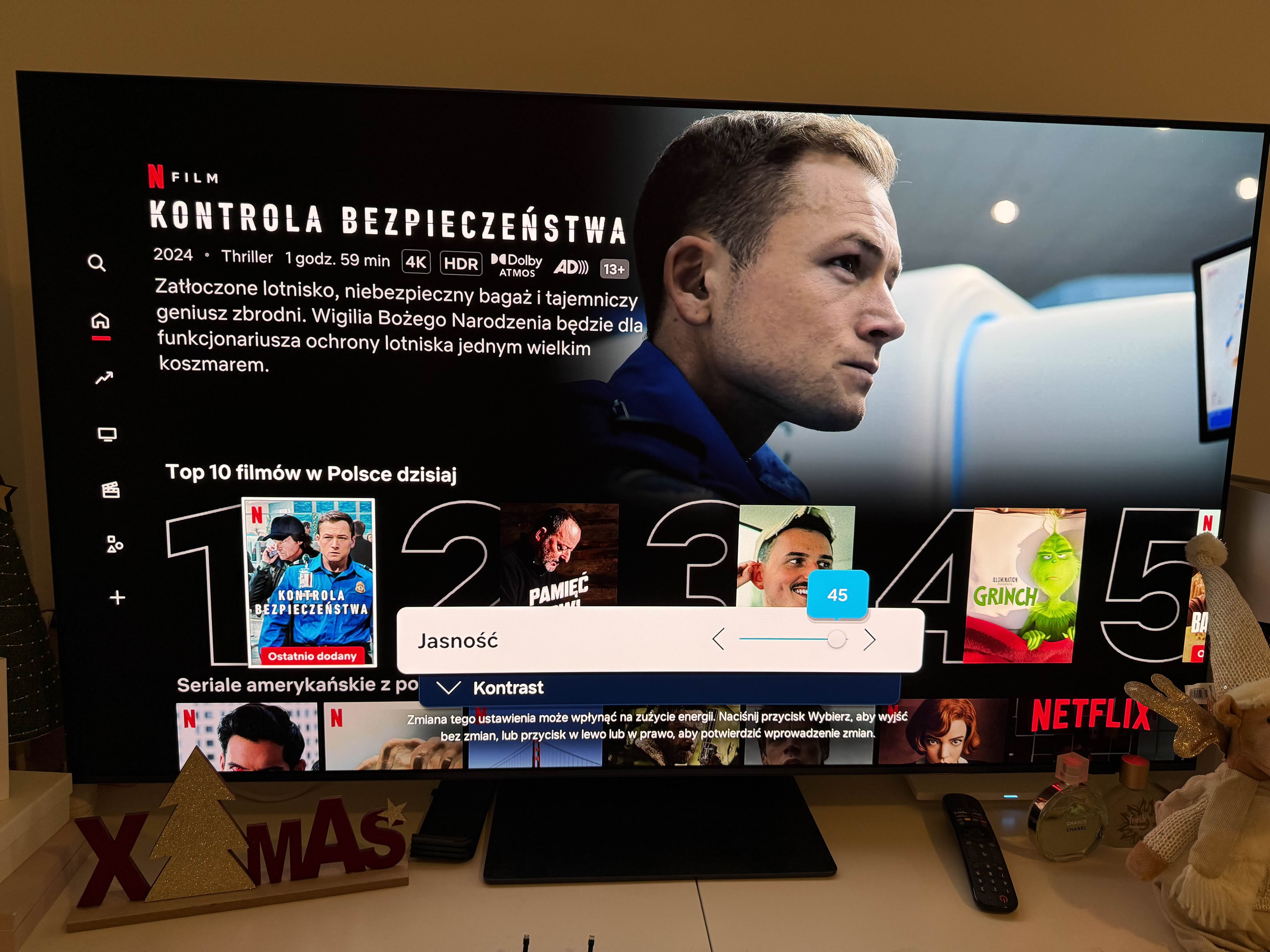Po pierwszym uruchomieniu telewizora od razu zobaczyłem różnicę względem mojego LG A1 – S95D OLED jest po prostu absurdalnie jasny (jak na OLED-a). Według profesjonalnych pomiarów osiąga on w HDR maksymalną jasność na poziomie ponad 1600 nitów dla 10% okna. To niemal 4 razy więcej od mojego starego LG. Pierwszy raz w życiu złapałem się na tym, że po zmroku musiałem wręcz ściemniać ekran, bo maksymalna wartość „50” po prostu raziła mnie w oczy i to z wyłączoną opcją Contrast Enhancer, której odpowiednik w LG miałem zawsze włączony na maska (dynamiczne mapowanie tonów).