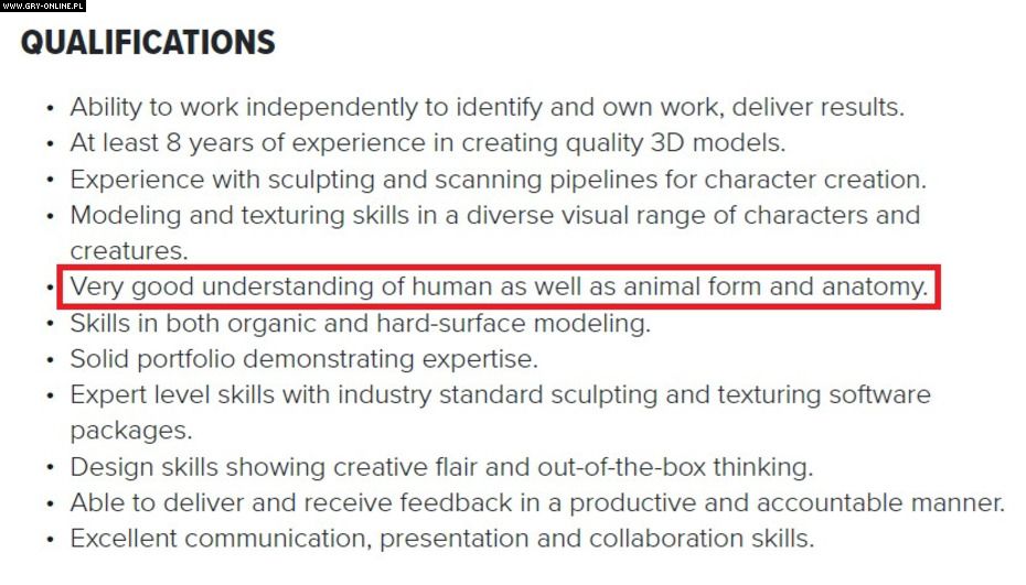 Jeśli graliście w Cyberpunka 2077, na pewno zauważyliście, że na ulicach Night City i w jego okolicy jest bardzo mało zwierząt (sam V może przygarnąć choćby iguanę i kota). Prawdopodobnie sequel owego futurystycznego RPG-a wprowadzi więcej pupili do uniwersum – to przynajmniej wydaje się sugerować wspomniana wyżej propozycja pracy. Możemy w niej bowiem przeczytać, że kandydat powinien „bardzo dobrze rozumieć budowę i anatomię zarówno człowieka, jak i zwierzęcia”.