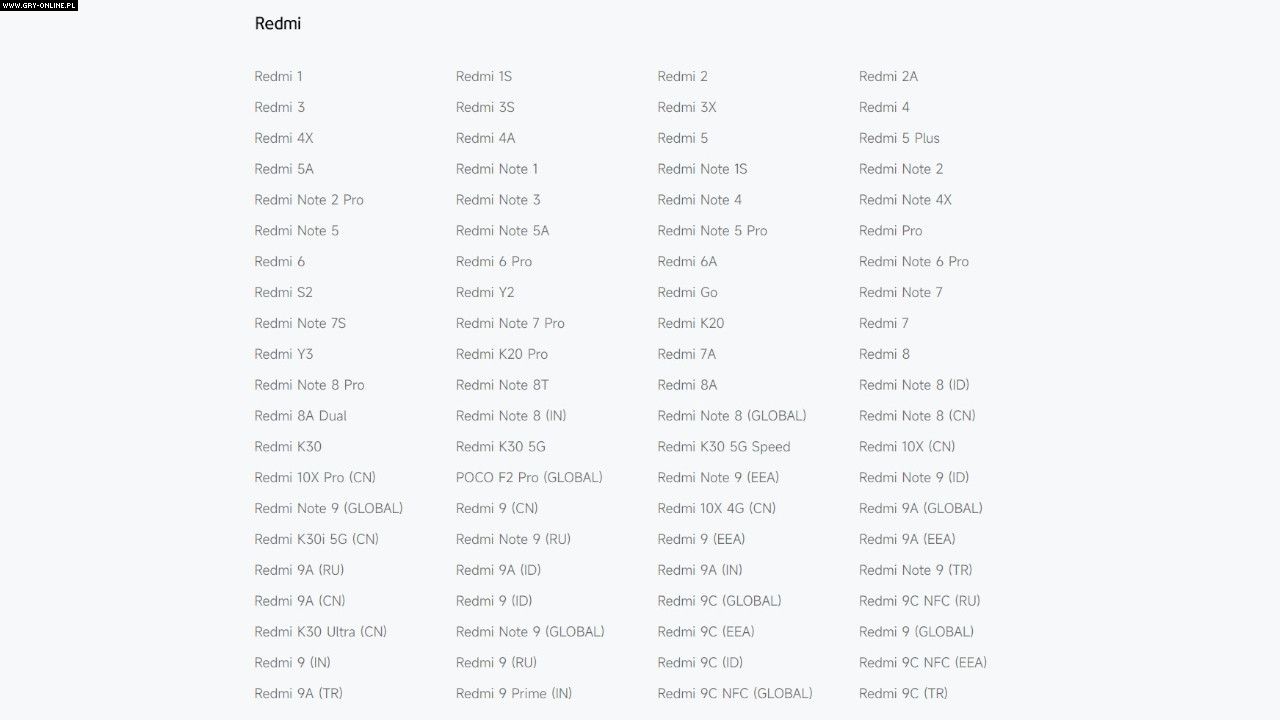 Oprócz wymienionych w powyższej liście urządzeń, pod tym linkiem znajdziecie odnośnik do wspomnianej wcześniej grupy urządzeń EOL, gdybyście chcieli dowiedzieć się więcej jej temat. Przy tym należy zaznaczyć, że do czasu premiery systemu HyperOS, lista EOL może zostać ponownie zaktualizowana o nowe urządzenia. Warto ją regularnie odwiedzać, jeśli posiadacie smartfon, od którego debiutu minęło już przynajmniej 3 lata. Pozostałe, a mniej znane produkty, znajdziecie na grafikach poniżej: