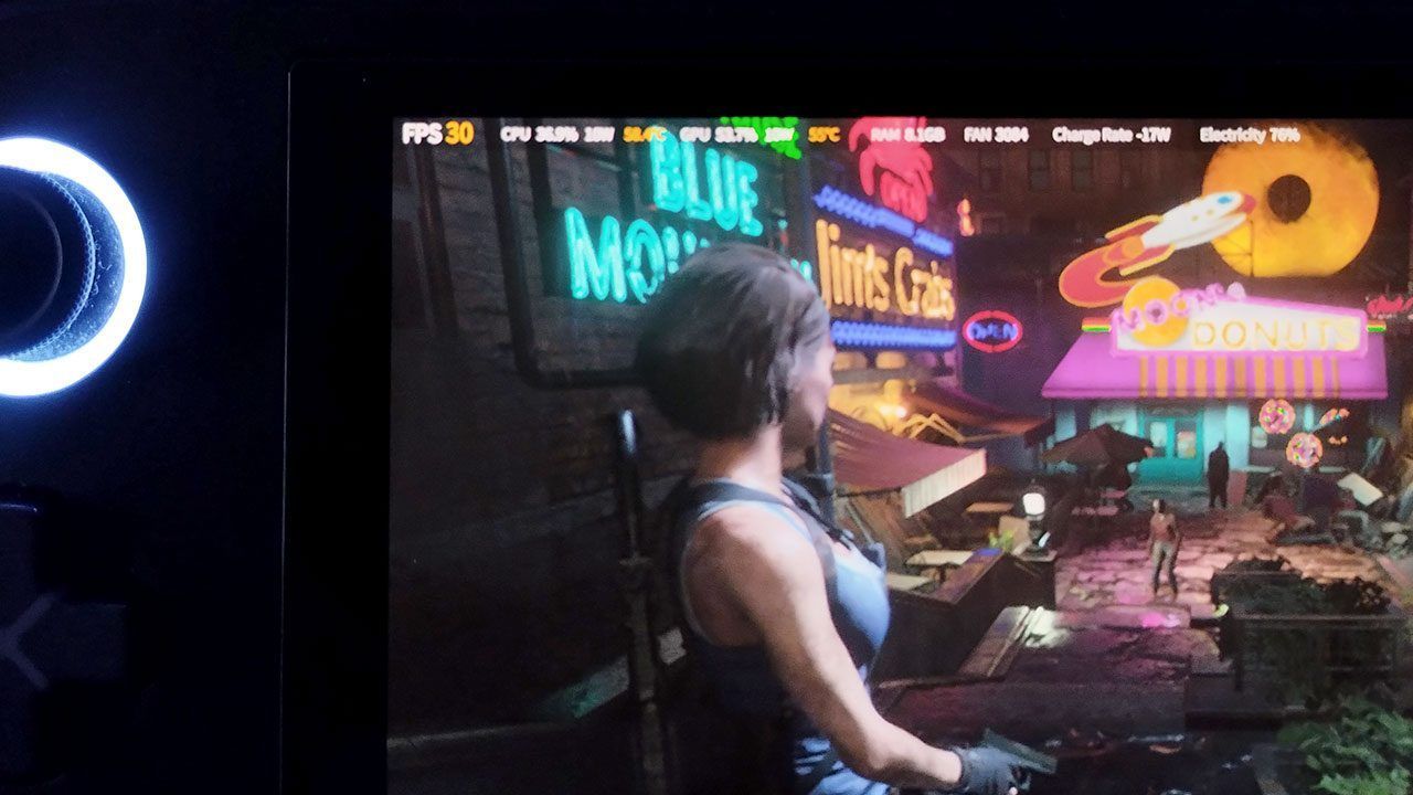 W styczniu zacząłem grać w Resident Evil 3 – gra działa bardzo dobrze, wygląda świetnie, potrzebując do działania w 30 kl./s nie więcej niż 12 W (realne zużycie mocy przez cały system to wówczas 19-20 W). W teorii powinienem móc bawić się bez problemów przez ponad 80 minut. Tymczasem dzisiaj sprzęt pozwala na maksymalnie 1h grania przy tym obciążeniu, co przekłada się na jakieś 70% wydajności nowej baterii. Fatalny wynik. Jasne, można grać na kablu, ale co to za mobilne granie?