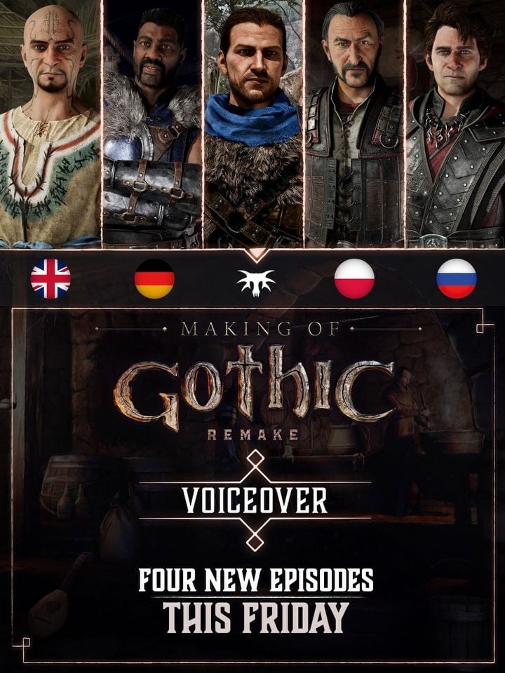 Jak poinformowano na oficjalnym serwerze gry na Discordzie, już w ten piątek pojawią się cztery specjalne odcinki z cyklu „Making Of” – tyle samo, ile pełnych wersji językowych dostępnych będzie w Gothic Remake. Poświęcone zostaną angielskiej, niemieckiej, polskiej i rosyjskiej lokalizacji.