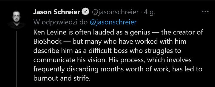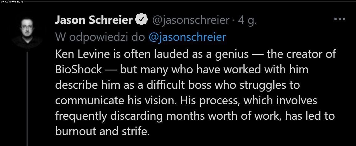 Prace nad grą miały dobiegać końca już w 2020 roku, a mimo to nadal nie usłyszeliśmy nic nowego na jej temat. Najwyraźniej dzieło Levine’a utknęło w „produkcyjnym piekle”, o czym donosi Jason Schreier z agencji Bloomberg.