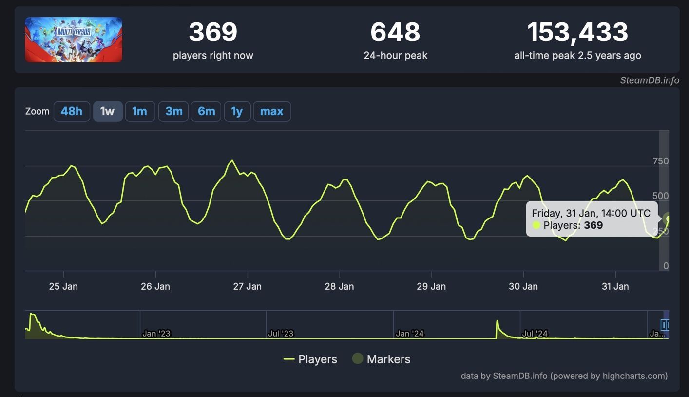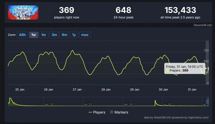 Choć MultiVersus miało relatywnie dobre oceny i na starcie zostało ciepło przyjęte, to szybko popadło w zapomnienie. Tuż po krótkim okresie dużego zainteresowania produkcja zanotowała drastyczny spadek liczby graczy i w pewnym momencie straciła aż 99% aktywnych użytkowników. Obecnie bawi się w niej zaledwie 369 osób (SteamDB.info).