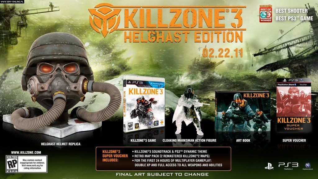 Do powyższych elementów dołączą: art book, film o kulisach tworzenia gry oraz voucher na dodatki do ściągnięcia. Wpisując kod odblokujemy dostęp do ścieżki dźwiękowej, dynamicznego motywu PlayStation 3, pakietu map Retro (2 najpopularniejsze areny z Killzone 2) oraz podwójnego doświadczenia i pełnego dostępu do broni/klas przez pierwsze 24 godziny zabawy.