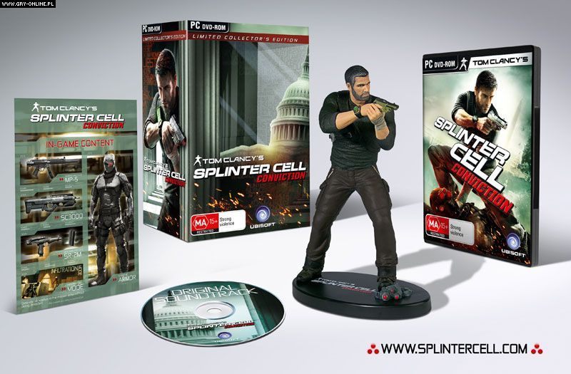 Ubisoft® zapowiedział wydanie limitowanej, kolekcjonerskiej edycji gry Tom Clancy’s Splinter Cell Conviction™, najbardziej wyróżnionej gry, w kategorii Xbox 360™ na tegorocznych targach E3. Kolekcjonerska edycja będzie dostępna w Polsce 25 lutego 2010 w wersji na Xbox 360 i PC. Limitowana edycja będzie zawierać: