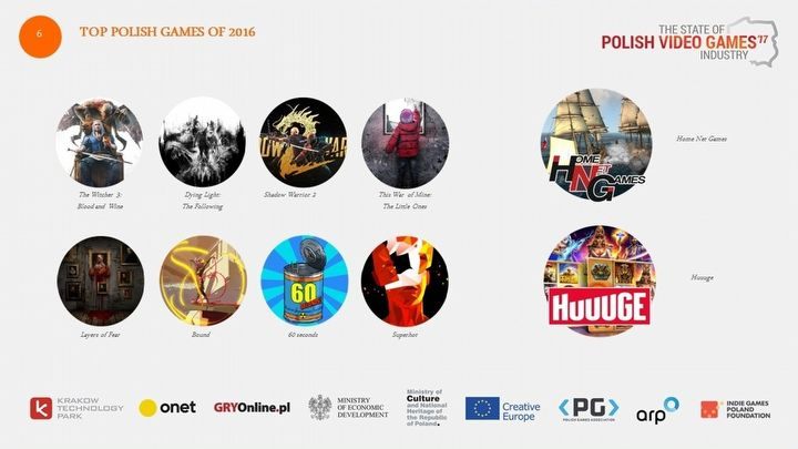 W 2016 roku gry „made in Poland” wygenerowały łącznie 1,25 miliarda złotych przychodu. Największe sukcesy na świecie odnosiły takie produkcje, jak Wiedźmin 3: Krew i wino (CD Projekt RED), Dying Light: The Following (Techland), Shadow Warrior 2 (Flying Wild Hog), This War of Mine: The Little Ones (11 bit studios), SUPERHOT (SUPERHOT team), Layers of Fear (Bloober Team), Bound (Plastic Studios) oraz 60 Seconds (Robot Gentleman Studios) – a zatem obok największych tytułów nie zabrakło małych, ale udanych gier niezależnych.