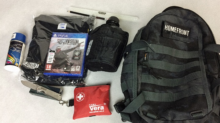 Mniej więcej w połowie maja na PlayStation 4, Xboksie One oraz komputerach osobistych zadebiutowała strzelanka Homefront: The Revolution od studia Deep Silver Dambuster. Jeżeli nie mieliście jeszcze okazji w nią zagrać, a dodatkowo zaliczacie się do grona posiadaczy konsoli firmy Sony, to mamy dla Was mały konkurs, w którym do wygrania jest rzeczona produkcja w wersji na PS4. Dodatkowo zwycięzca otrzyma także zestaw gadżetów, który powinien się znaleźć na wyposażeniu każdego partyzanta, gdyż zawiera: plecak, pakiet pierwszej pomocy, manierkę, nóż, koszulkę, spray oraz glow stick, czyli światło chemiczne.