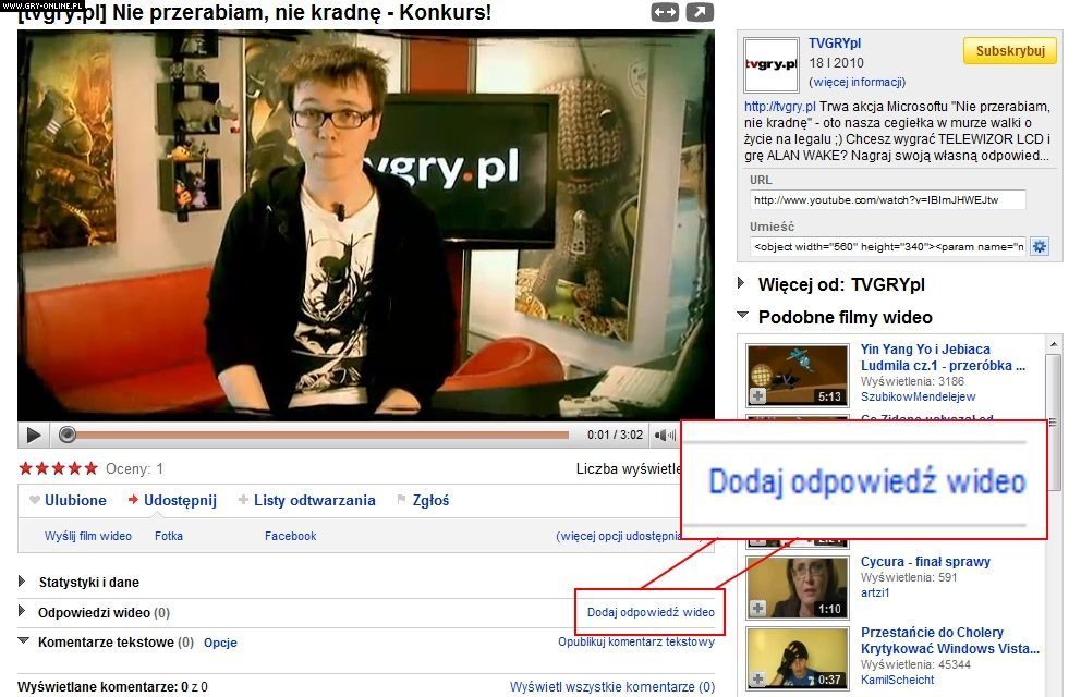 Aby zostać szczęśliwym posiadaczem przygód nękanego koszmarami pisarza oraz sprzętu RTV firmy LG należy nakręcić swój własny testymonial, dlaczego Wy nie przerabiacie Xboksa. (może być nawet komórką). Możecie, ale nie musicie wzorować się na podobnym nagraniu z udziałem Krzysztofa "Lordareona" Gonciarza z tvgry.pl. Swój filmik należy opublikować na kanale tvgry.pl na YouTube w charakterze odpowiedzi na zalinkowany film. Aby tego dokonać musicie skorzystać z opcji „Odpowiedź wideo”, którą możecie znaleźć pod materiałem Lordareona (zobacz poniższy obrazek).