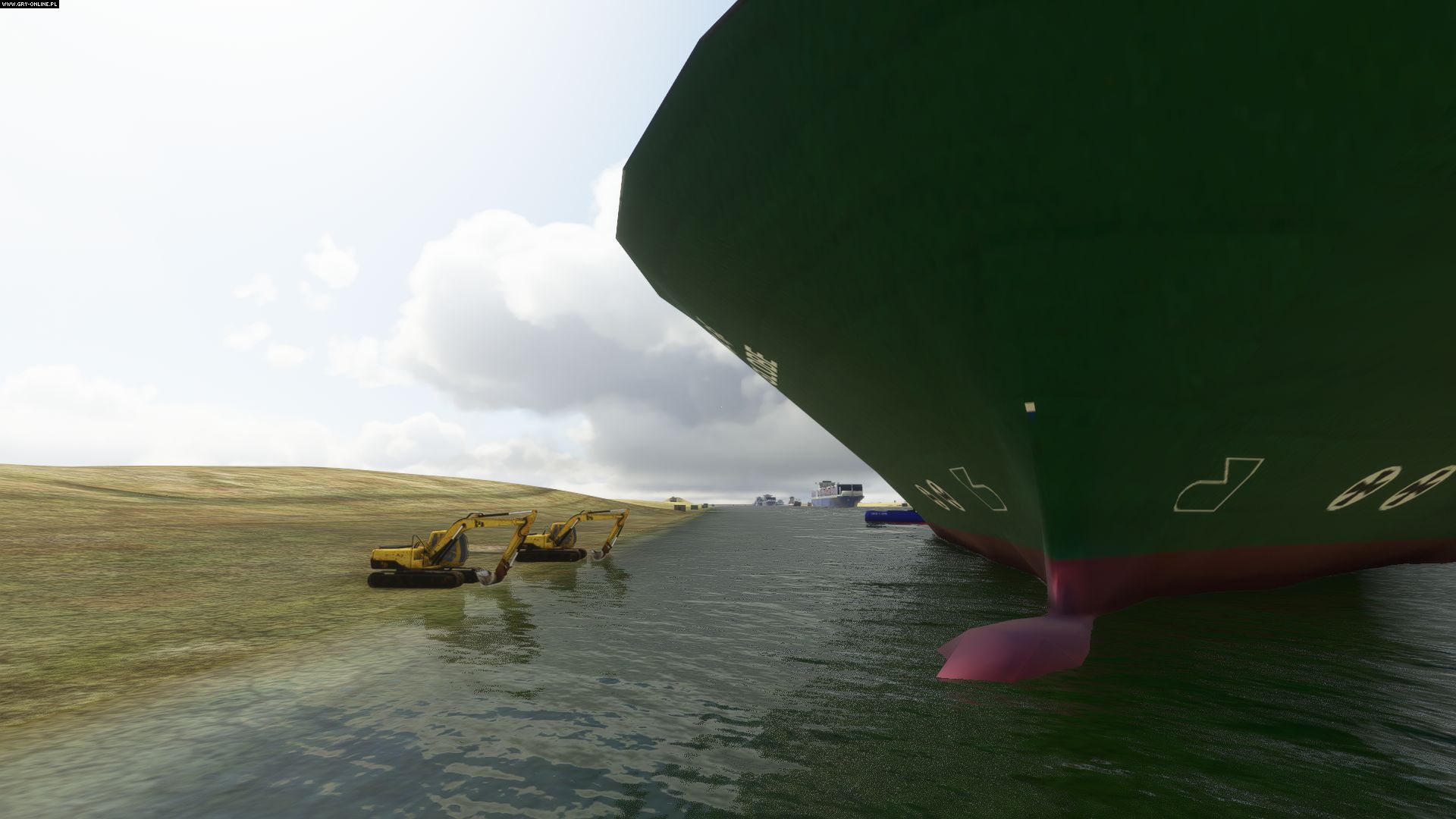 Drugi z tych modów jest bardziej imponujący, ale wymaga więcej pracy, gdyż konieczne jest jego połączenie z dwiema innymi modyfikacjami. Projekt opracowano bowiem jako dodatek do popularnego Global AI Ship Traffic MSFS , który wiernie odtwarza ruch jednostek wodnych na świecie, dzięki czemu Ever Given - Suez Traffic Jam może realistycznie zasymulować blokadę. Do tego musicie zainstalować także Dave's Crooked Library, gdyż ten mod zawiera wymagany model koparki.