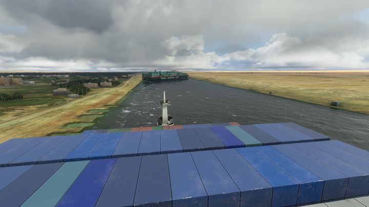 Osoby chcące się przelecieć nad zablokowanym Kanałem Sueskim mogą wybrać jeden z dwóch modów. Pierwszym jest Ever Given Landmark , Canal de Suez. To prostszy z tych projektów, gdyż odtwarza jedynie pechowy kontenerowiec.