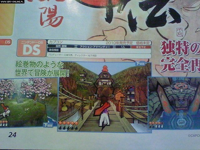 Na skanach widać trzy niewielkie zrzuty ekranowe przedstawiające charakterystyczny dla Okami styl graficzny (oczywiście w przypadku DS-a mocno uproszczony). Na jednym z nich przedstawiona została także główna bohaterka produkcji. W tabeli umieszczonej ponad nimi widnieje również przybliżona data premiery – jest nią generalnie 2010 rok.