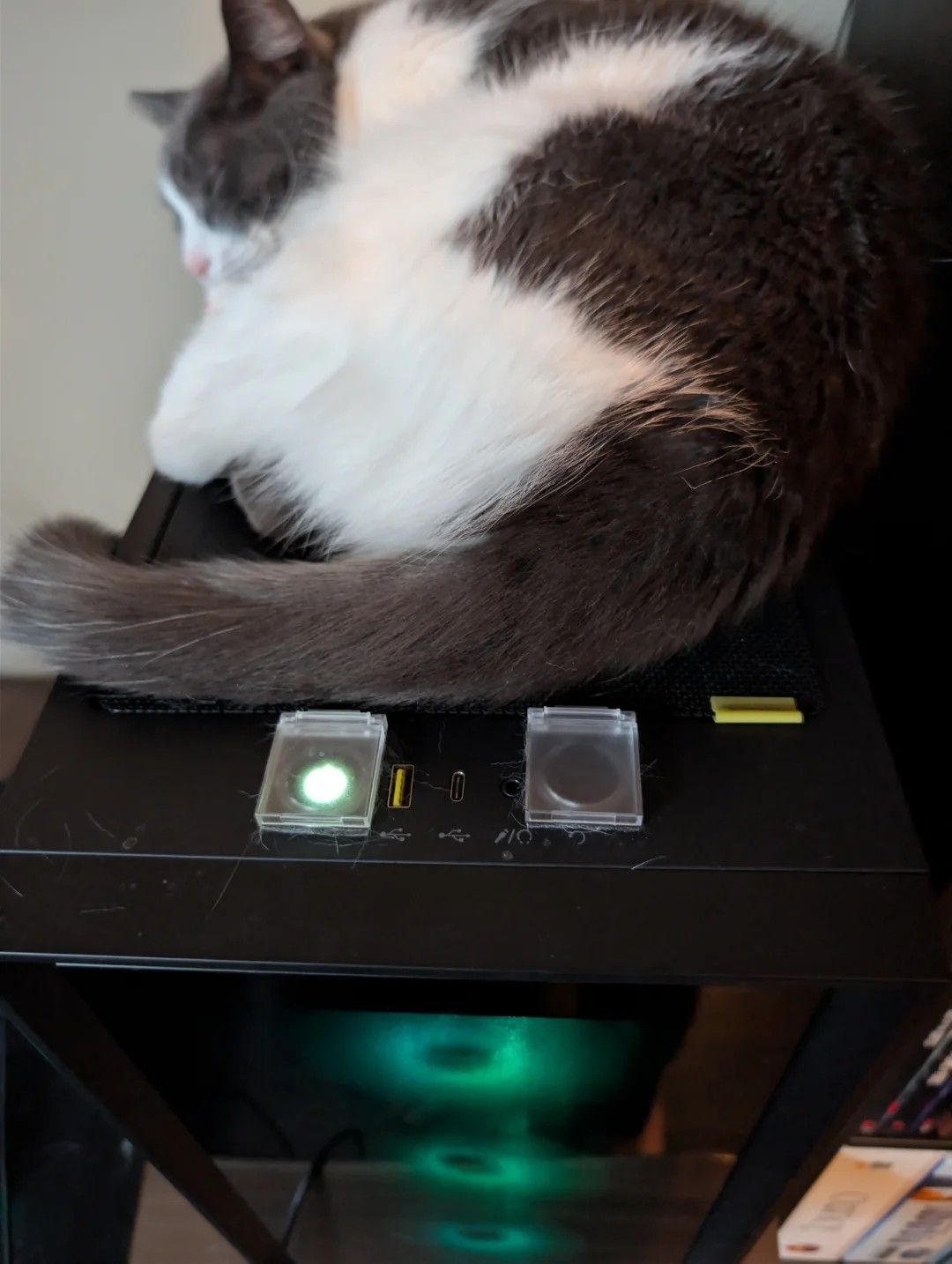 Jeden z internautów zaprezentował na Reddicie domowy sposób na rozwiązanie problemu, z którym się borykał. Ponieważ jego kot regularnie wyłączał komputer, użytkownik przykleił taśmą niewielki kawałek kartonu, tworząc improwizowaną klapkę zasłaniającą przycisk zasilania. W ten sposób sprzęt jest chroniony przed przypadkowym wyłączeniem w trakcie rozgrywki, jednak autor wpisu o pseudonimie Shmikken przyznał, że jest zainteresowany zakupem bardziej trwałego zamiennika.