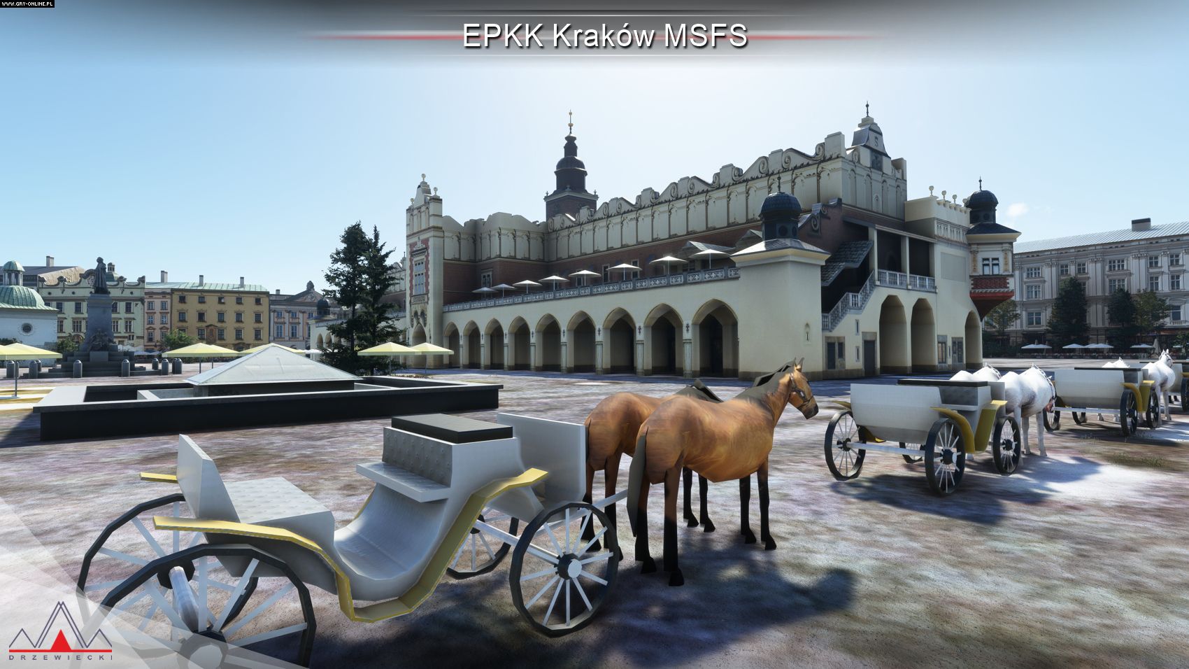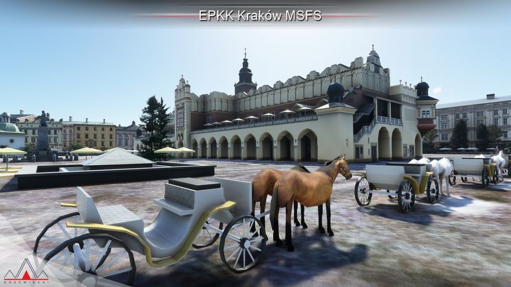 Za projekt odpowiada Drzewiecki Design, czyli polska firma specjalizująca się w tworzeniu zawartości przeznaczonej do symulatorów lotu. Wydany przez nią dodatek EPKK KRAKOW MSFS skupia się na szczegółowym modelu lotniska im. Jana Pawła II, lecz oprócz tego wprowadza wiele zmian w projekcie całego Krakowa. Dzięki niemu podziwiać możemy więc Wawel, kościół Mariacki, Sukiennice, inne świątynie na terenie Starego Miasta, a nawet poszczególne kamienice otaczające krakowski rynek. Możemy na nim zobaczyć nawet małe dorożki.