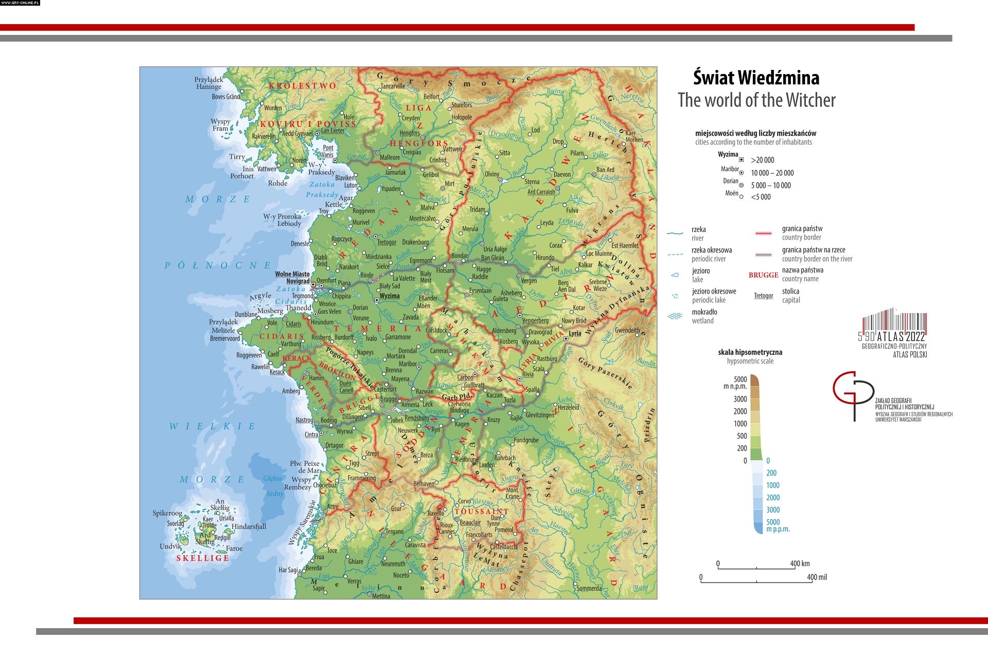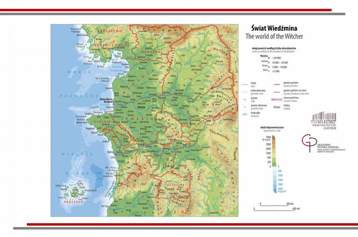 Andrzej Sapkowski wiele razy zapewniał, że pisząc Wiedźmina, koncentrował się na fabule oraz postaciach, a świat Geralta i spółki stworzył niejako przy okazji. Nie oznacza to, oczywiście, iż jest on pozbawiony sensu – wręcz przeciwnie, zarówno kwestie polityczne, jak i ekonomiczne mają go wiele. Podobnie z terenami, o których czytamy na kartach powieści czy zbiorów opowiadań. Ich opisy są na tyle szczegółowe, że pozwoliły studiu CD Projekt RED stworzyć rozległe wirtualne przestrzenie na potrzeby gier z serii Wiedźmin. O krok dalej poszli pasjonaci kartografii z Zakładu Geografii Politycznej i Historycznej Wydziału Geografii i Studiów Regionalnych Uniwersytetu Warszawskiego, którzy wykonali tę oto mapę: