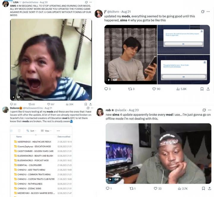 Nawet bez znajomości angielskiego używane we wpisach grafiki są dość wymowne. Jedna z użytkowniczek twierdzi, że przeszukanie nieaktualnych modów i sprawdzenie ich w grze zajęło jej aż 6 godzin.X