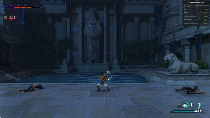 Niższa liczba klatek z reguły była w czasie cutscenek (ok. 130-140 kl./s). Przy większej liczbie wrogów, dodatkowych elementach, specjalnych atakach i innych wizualnych atrakcjach, gra schodziła do około 100-110 kl./s, nie było jednak żadnych przycinek. Najniższa wartość, jaką zaobserwowałem to 60 kl./s w momencie, gdy prawdopodobnie skumulowało się kilka specjalnych ataków, a na ekranie znajdowało się sporo niepozbieranych kryształków i innych interaktywnych elementów. Było to jednak jednorazowe, a liczba klatek szybko wróciła do trzycyfrowych wartości.