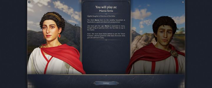 Pod względem fabularnym, wybór Marcii lub Marcusa skutkuje poważnymi zmianami w opowiadanej historii. Choć niektóre wydarzenia pozostają takie same, reszta fabuły porusza kompletnie inne tematy. Kampania Marcusa jest nieco bardziej archetypową historią o młodym, niedoświadczonym polityku nagle uwikłanym w przerastające go jeszcze spiski i konflikty. Kampania Marcii opowiada natomiast o jej manipulacjach systemem w celu pięciu się przez rzymską hierarchię mimo swojej płci. Ponowne rozegranie kampanii drugim protagonistą skutkować będzie więc odmiennym doświadczeniem fabularnym oraz niemal identycznym zakończeniem.