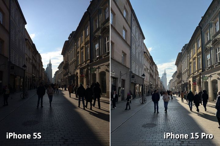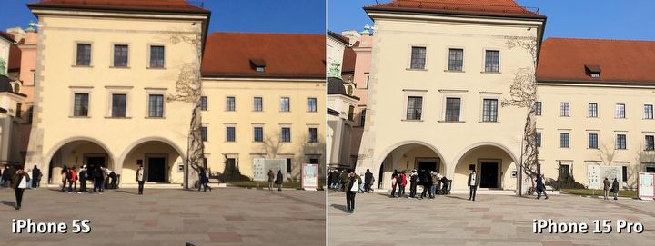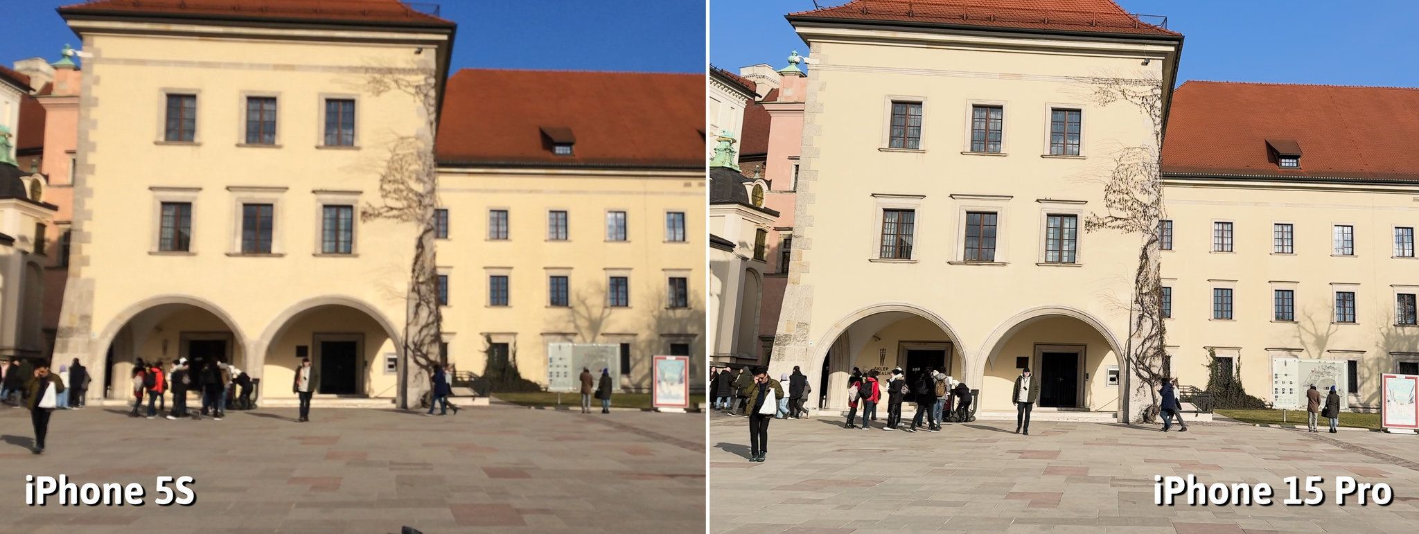 Sucha specyfikacja to jednak nie wszystko, więc zabrałem iPhone’a 5S na długi spacer, żeby zobaczyć jak radzi sobie w praktyce. Przygotowałem też małe porównanie z moim prywatnym iPhonem 15 Pro. Co jasne, nie po to, żeby ustalić, który model robi lepsze zdjęcia, bo to jest oczywiste. Bezpośrednie zestawienie najlepiej zobrazuje jaki progres dokonał się w ciągu ostatnich kilkunastu lat.