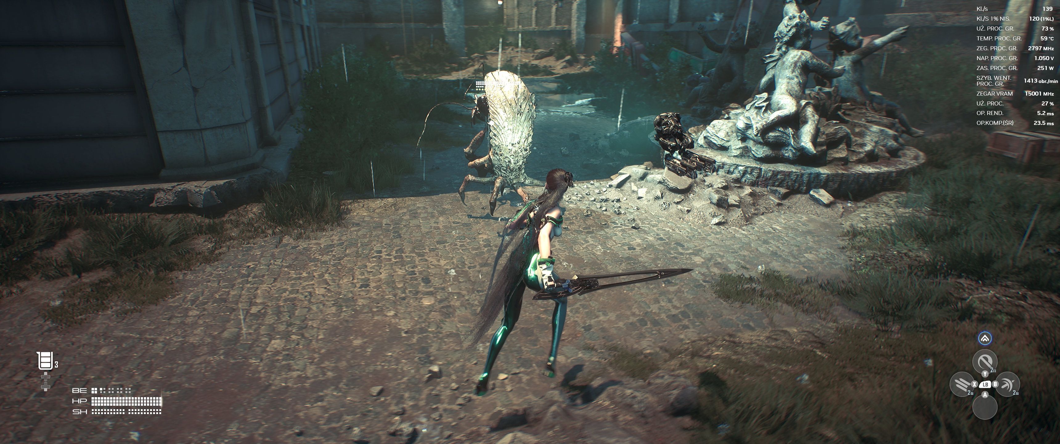 Stellar Blade testowałem na mocnym pececie wyposażonym w procesor Intel Core Ultra 9 285K, kartę graficzną NVIDIA GeForce RTX 5080 oraz 48 GB pamięci RAM DDR5. Zdecydowałem się na zabawę w mojej ulubionej rozdzielczości, czyli 3440 na 1440 pikseli, na monitorze ultrawide. Podczas testów włączyłem upscalingu DLSS w trybie jakości, gdyż wizualnie prezentowało się to lepiej niż z wyłączonym upscalingiem. Taka konfiguracja zapewniała mi od około 140 fpsów w bardziej wymagających lokacjach, do 180 klatek na sekundę w tych bardziej zamkniętych i mniej „efektownych”. To bardzo dobre wyniki, jak na tytuł, który wygląda tak ładnie.