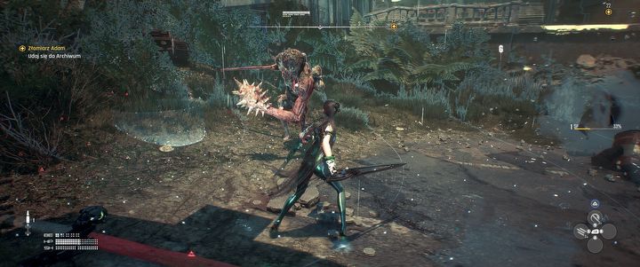 Szczególnie podobają mi się walki z dużymi przeciwnikami, gdzie efekty cząsteczkowe sypią się po ekranie gęsto, potęgując poczucie mocnych ciosów i perfekcyjnych kontr. Stellar Blade ma też sekcje z otwartym światem, gdzie jakość oprawy wizualnej nadal trzyma się dobrze, choć odbywa się to jednak kosztem wydajności. Ogólnie rzecz biorąc Stellar Blade wygląda naprawdę ładnie. Modele postaci są tu dopieszczone do maksimum, twórcy zadbali o świetne, naturalnie wyglądające animacje poruszania się oraz walki, a kolejne środowiska mocno się od siebie różnią, dając uczucie świeżości podczas eksploracji kolejnych krain.