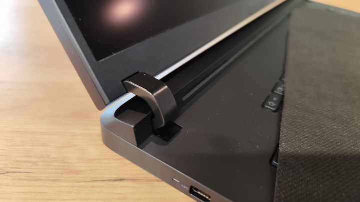 W konstrukcji martwi mnie jednak jakość wykonania zawiasów – wykonano je z innego tworzywa niż resztę obudowy i – moim zdaniem – nie wyglądają na zbyt wytrzymałe. Kąt nachylenia ekranu również mógłby być lepszy – jeśli korzystacie ze stojaków pod laptopy, aby ekran znajdował się centralnie przed wami, musicie pamiętać, że w przypadku ROG Strix Scar 18 będzie on nieco pochylony do przodu. Zabrakło odrobiny, aby można było ustawić go w idealnej pozycji. Inna sprawa, że ze względu na swoje rozmiary laptop ledwo zmieścił się na podstawce przeznaczonej raczej dla modeli 16-calowych.