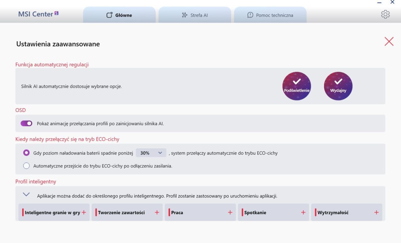 To kierunek rozwojowy AI, który zwykle jest pomijany podczas głośnych prezentacji, tymczasem pozytywnie wpływa na wykorzystujące lokalną sztuczną inteligencję urządzenia. W tym konkretnym przypadku MSI Prestige 16 Evo używa jej do zarządzania poszczególnymi podzespołami za pośrednictwem MSI AI Engine. Skutkiem jest nie tylko zwiększona wydajność, ale również dłuższy czas pracy. Testując te rozwiązania, zauważyłem, że przy zastosowaniu optymalizacji AI laptop na baterii pracował aż 84 minuty dłużej. Dodatkowo pozwala to inteligentnie wykrywać scenariusze pracy użytkownika i automatycznie dostosowywać ustawienia sprzętowe, aby zapewnić optymalną wydajność.