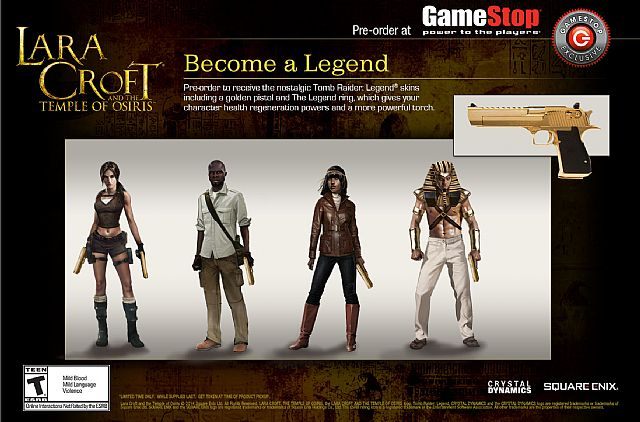 Firma Square Enix ujawniła na swoim oficjalnym blogu zawartość złotej edycji nadchodzącej gry Lara Croft and the Temple of Osiris. Nabywcy Gold Edition otrzymają 7,5-centrymetrową figurkę Lary Croft, album z grafikami koncepcyjnymi, a także przepustkę sezonową, która da im dostęp do wszystkich przyszłych dodatków DLC (można ją nabyć osobno). Posiadaczy konsoli Xbox One z pewnością nie ucieszy fakt, że Gold Edition póki co nie jest planowane na ich platformę. Złota edycja będzie dostępna u konkretnych sprzedawców, których lista pojawi się w późniejszym terminie.