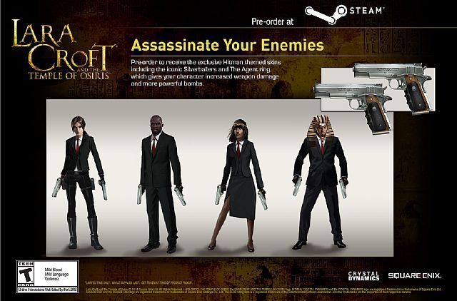 Już teraz planowane są pomniejsze DLC w postaci pakietów Hitman Pack, Deus Ex Pack oraz Legend Pack. Hitman Pack oferuje stroje rodem z gier o Agencie 47, dwa ikoniczne Silverballery (pistolety AMT Hardballer) oraz pierścień Agenta [oryg. Agent ring] zwiększający obrażenia zadawane bronią i bombami. Deus Ex Pack z kolei daje dostęp do karabinu szturmowego Adama Jensena, a także pierścień Wszczepu [oryg. Augment ring] zmniejszający koszt skrzyń ze skarbami o 10%. I wreszcie odwołujący się do Tomb Raider: Legend, Legend Pack: ten pakiet prezentuje złoty pistolet oraz pierścień Legendy [oryg. Legend ring], dzięki któremu pochodnia świeci mocniej, a zdrowie się regeneruje. Pierwszy zestaw nabyć będzie można na platformach Steam, Xbox Live, PlayStation Network oraz u innych dystrybutorów cyfrowych. Pozostałe będą dostępne u wybranych sprzedawców (w tej chwili wydają się to być GameStop i Amazon). Zawartość pakietów wygląda następująco: