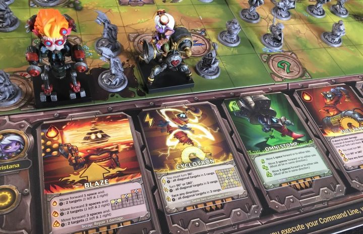 Mechs Vs. Minions ma oferować kooperacyjną kampanię dla 4 osób. W trakcie składających się na nią misji, zadaniem graczy będzie zaprogramowanie mechów, a następnie wysłanie ich do walki z zastępami niewielkich stworów (Minions), znanych z komputerowego League of Legends. Sporą zaletą produkcji ma być bogata zawartość, w tym wysokiej jakości kolorowe figurki stylem wykonania nawiązujące do LoLa, spora plansza, różnorodne karty ruchu, kości, klepsydra itd. Te i inne elementy stołowego Mechs Vs. Minions możecie podziwiać na zamieszczonych w tym newsie zdjęciach (oryginalnie opublikowanych przez Shut Up & Sit Down).