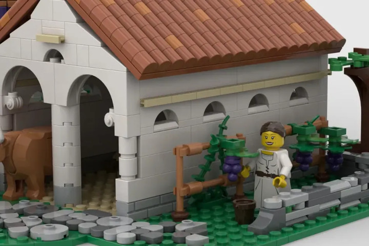 Dalej mamy niewielką dioramę rzymskiego miasteczka. Składa się ona z farmy, gdzie hodowane są winogrona, oliwki i bydło, zegara słonecznego, warsztatu wyrobu ceramiki i małej łaźni. Wszystko to wybudowano z 2013 elementów, do których dochodzi 6 figurek – 5 mieszkańców i jedna krowa.