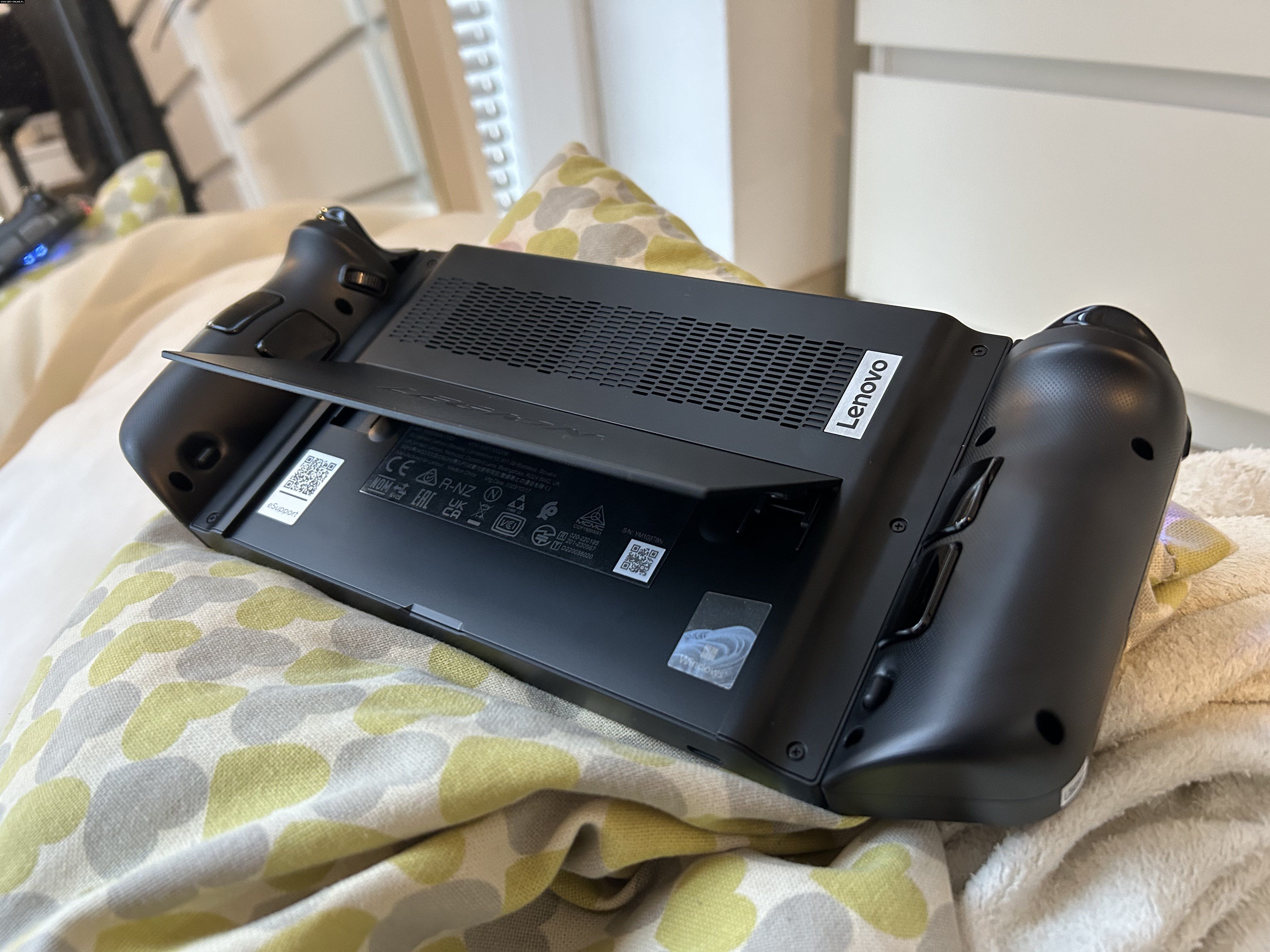 Za rozmieszczenie przycisków funkcyjnych prawdopodobnie odpowiadał sam diabeł lub przynajmniej jakiś jego sługa, bo domyślnie „start” i „select” nie znajdują się (jak można byłoby przypuszczać) na górze urządzenia, po prawej i lewej stronie, ale… na dole, w bardzo dziwnym miejscu na lewym kontrolerze. Z tego powodu podczas pierwszych kilku godzin grania, nieustannie włączałem nakładkę Legion Space lub menu wydajności zamiast poprawnych przycisków. Na szczęście po kilku aktualizacjach Lenovo ugięło się i pozwoliło na zmianę przypisania przycisków, dzięki czemu wszystko jest już dzisiaj „do odkręcenia”. Pamiętajcie jednak, że sprzęt domyślnie ma właśnie takie mało intuicyjne przypisanie klawiszy.