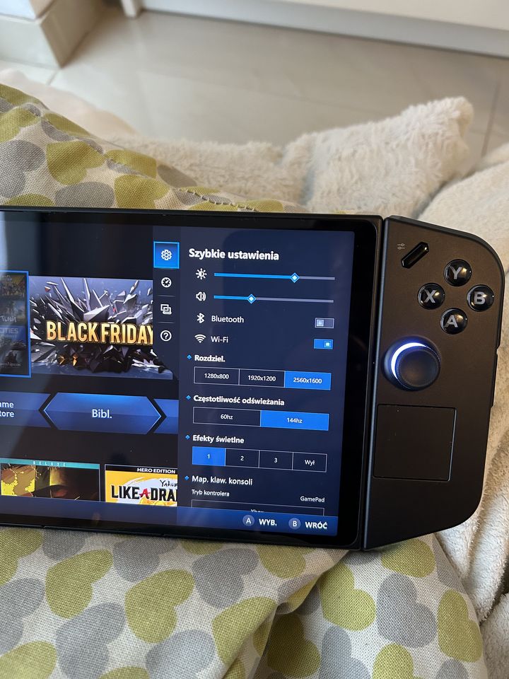 Bardzo dobrze sprawował się ekran, który zrobił na mnie duże wrażenie. Co do zasady nie lubię paneli LCD i uważam je za relikt przeszłości, ale wyświetlacz Legiona Go (choć to nadal zwykłe LCD) bardzo mi się podobał. Ma świetne kąty widzenia, dobrą jasność maksymalną, wiernie oddaje kolory, a częstotliwość odświeżania na poziomie 144Hz poprawia płynność nawigacji po systemie i przydaje się w starszych i mniej wymagających grach. Do tego trzeba dodać bardzo wysoką rozdzielczość 2560 na 1600 pikseli.