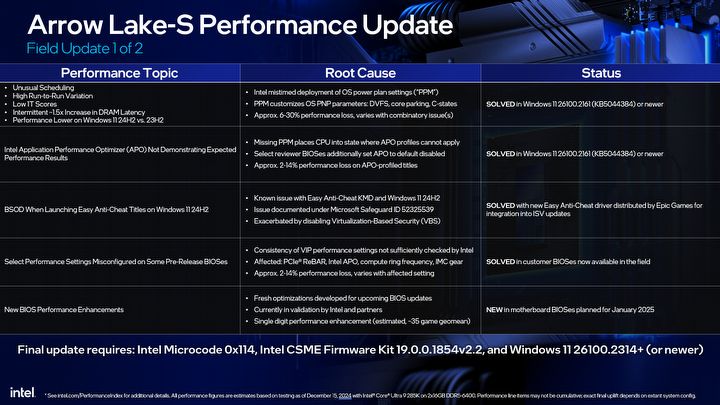Powyższe problemy powinny zostać rozwiązane, gdy zainstalujemy wspomnianą łatkę BIOS-u oraz Windowsa 11 KB5044384. Oczywiście wciąż pozostaje piąta kwestia, która według Intela zostanie naprawiona w styczniu 2025 roku. Dotyczy poprawy optymalizacji BIOS-u, co według Intela pozytywnie wpłynie na wydajność w grach, które dotychczas nie była zadowalająca.