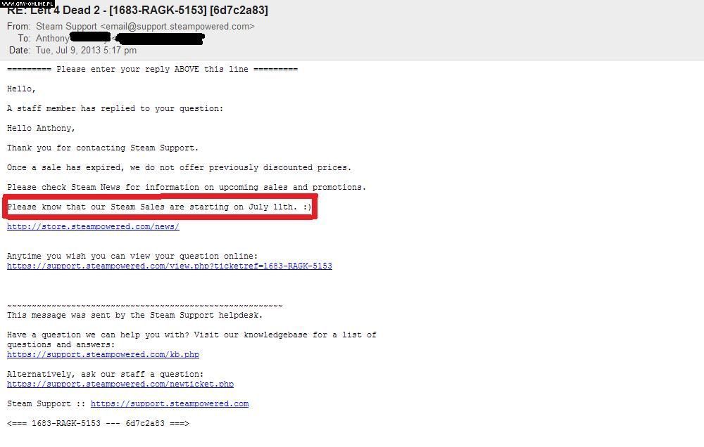 Pojawiły się kolejne dowody na to, że Summer Sale w sklepie cyfrowej dystrybucji Steam rozpocznie się już jutro zapewne po godz. 19:00 czasu polskiego. Letnia wyprzedaż w tym roku odbyłaby się w podobnym okresie co zeszłoroczna. Na stronie internetowej reddit.com udostępniono obrazki jednoznacznie wskazujące na podany termin. Data 11 lipca pojawiła się w paru miejscach, m.in. na steamowym profilu redakcji Game Informer oraz w odpowiedzi e-mailowej jednego z pracowników Valve. Czy trzeba dodawać więcej?