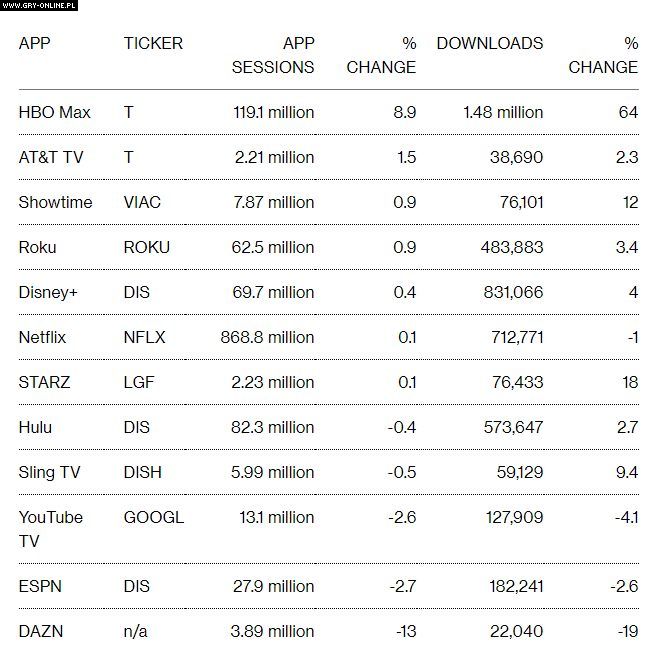 I jasne, jeżeli chodzi o liczbę sesji z aplikacją, to HBO Max nadal daleko do Netfliksa, który we wspomnianym czasie zyskał ich niemalże 8 razy więcej (868,8 mln). Króla udało się jednak zdetronizować w wyżej podanej statystyce dotyczącej pobrań (Netflix miał ich o ponad połowę mniej, 712 tysięcy).