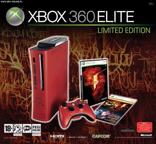 W skład limitowanego zestawu Xbox 360 Elite wchodzi: czerwona konsola Xbox 360 z dyskiem twardym 120 GB, gra „Resident Evil 5” oraz bezprzewodowy kontroler w kolorze czerwonym.