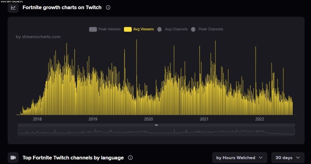 Przez długie lata Fortnite cieszył się wielką (może nawet zbyt wielką) popularnością, przyciągając tłumy graczy oraz widzów. Jednakże zainteresowanie tytułem studia Epic Games radzi sobie coraz glorzej. Na Twitchu oglądalność Fornite’a wyraźnie spada .