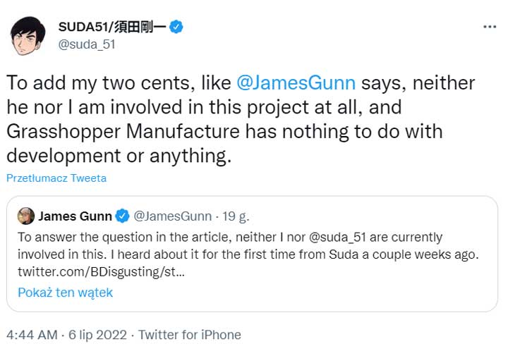 Projektant Suda51 i reżyser oraz scenarzysta James Gunn poinformowali, że nie mają nic wspólnego z remake’em gry. Nie oznacza to, że są przeciwni pomysłowi – po prostu nie są w niego zaangażowani.