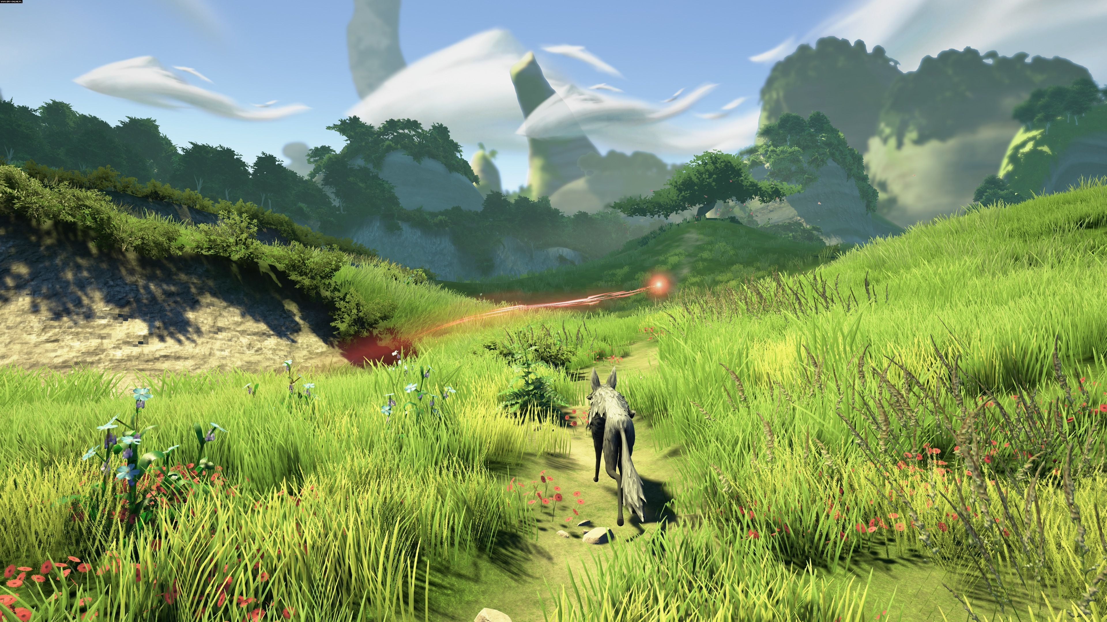 W podróżach wilkowi towarzyszyć ma magiczna istota przypominająca czerwoną kulę światła, która będzie nam pomagała odnaleźć drogę do celu. Jej moc pozwoli również zobaczyć wspomnienia z dawnych czasów, sprzed upadku cywilizacji Inrashi.