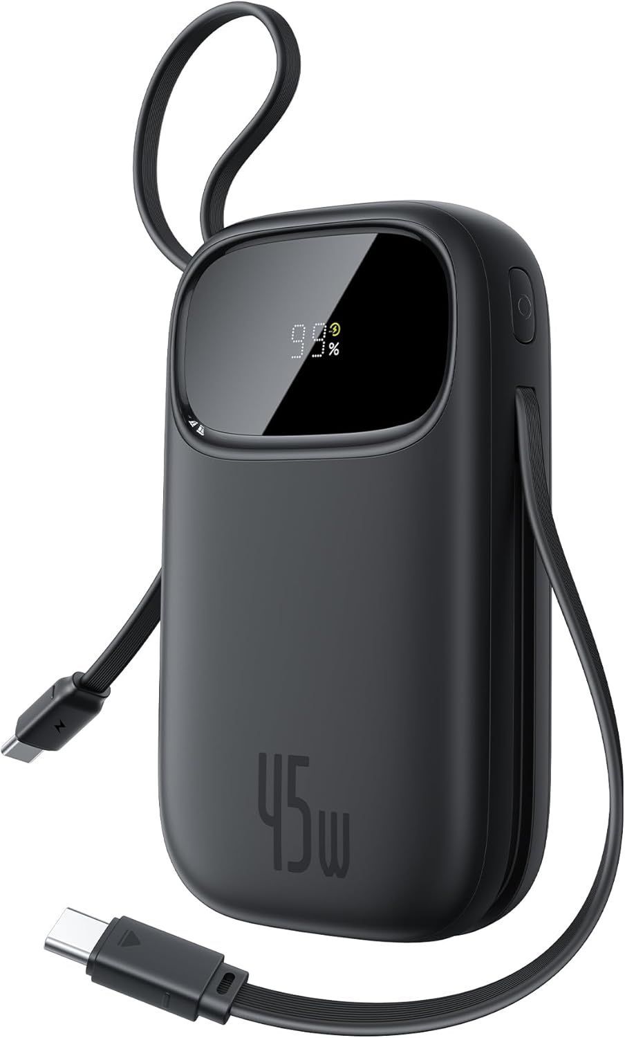 To, co wyróżnia QPow3 Baseusa na tle innych powerbanków, to dwa wbudowane kable – USB-C do USB-C oraz USB-C do złącza Lightning. W praktyce oznacza to tyle, że nie musisz pamiętać o żadnym dodatkowym przewodzie. Masz zawsze przy sobie gotowe rozwiązanie do ładowania iPhone’a, iPada, sprzętu Samsunga, słuchawek, pada do konsoli albo czegokolwiek innego z portem USB-C. Kable chowane są w obudowie, więc się nie plączą, nie wystają, nie ulegają uszkodzeniom, pozostając zawsze na miejscu, kiedy ich potrzebujesz.