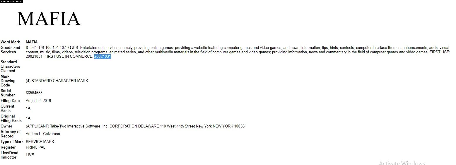 2 sierpnia 2019 roku w Urzędzie Patentów i Znaków Towarowych Stanów Zjednoczonych firma Take-Two Interactive zarejestrowała nowy znak towarowy, który - jak pewnie się już domyślacie - nawiązuje do serii gier Mafia. Wniosek został złożony w kategorii „Goods and Services”, która odnosi się głównie do szeroko pojętej branży gier wideo oraz usług rozrywkowych.
