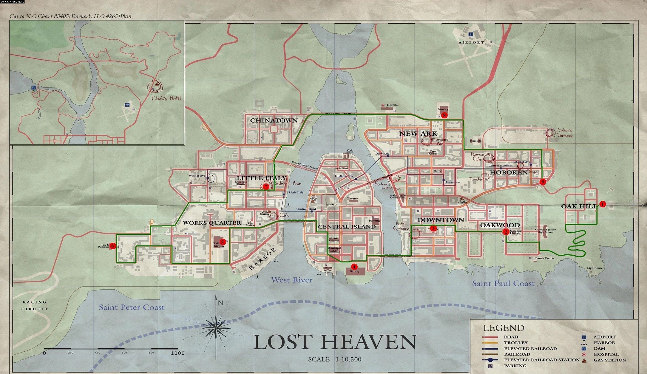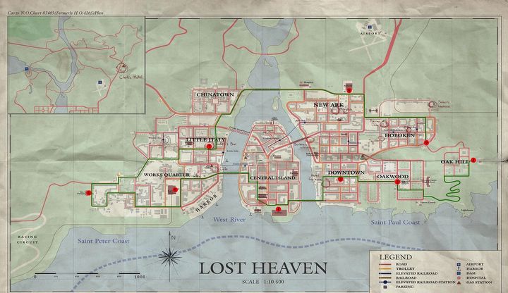 Mieliśmy już okazję zobaczyć, jak prezentuje się miasto Lost Heaven w Edycji Ostatecznej pierwszej odsłony serii Mafia. Teraz jednak twórcy postanowili pokazać metropolię w szerszej perspektywie. Na oficjalnej stronie gry zamieszczono mapę metropolii z remake’u. Grafikę zamieściliśmy poniżej wraz z planem oryginalnego Lost Heaven.