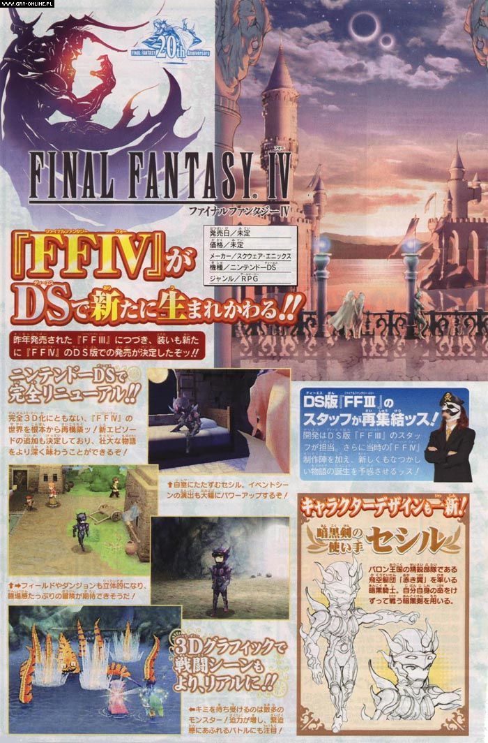 Chociaż koncern Square Enix nadal milczy w sprawie przeróbki czwartej odsłony cyklu Final Fantasy, posiadacze konsoli Nintendo DS mogą być już pewni, że taki produkt powstanie. Krótką zapowiedź gry, wraz z pierwszymi obrazkami, opublikowano w czasopiśmie Shonen Jump.