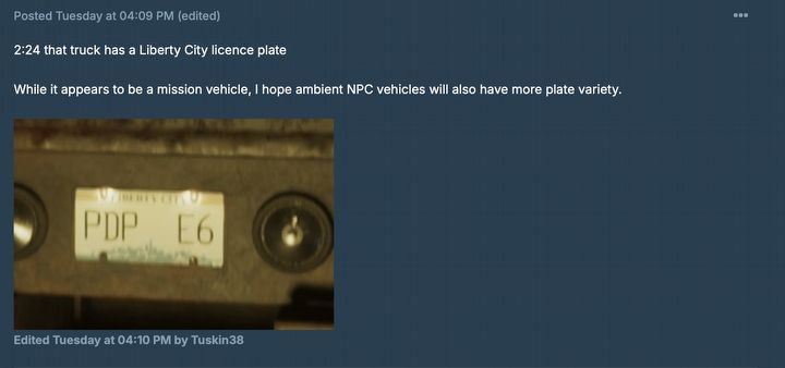 Poszlaki? Tablice rejestracyjne. Społeczność zgromadzona na GTAforums zwróciła uwagę na rejestracje pojazdów obecnych na świeżych screenach i w nowym zwiastunie, które nie pochodzą z Leonidy – fikcyjnej wersji Florydy, gdzie toczyć będzie się akcja gry. Pojawia się za to na nich nazwa „Gloriana”, wcześniej nieobecna w uniwersum GTA. Gracze podejrzewają, że może to być odpowiednik stanu Georgia – sąsiadującego z Florydą, znanego m.in. z rozległych lasów i gór. I właśnie takie krajobrazy – leśne, górzyste – można wypatrzyć w kilku scenach trailera oraz na oficjalnych screenach, które niezbyt przypominają florydzki krajobraz.