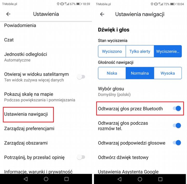 Możesz wyłączyć przekazywanie wskazówek głosowych przez Bluetooth. Wtedy będą one odtwarzane przez głośnik smartfona, a muzyka lub podcasty będą grały nieprzerwanie w tle.