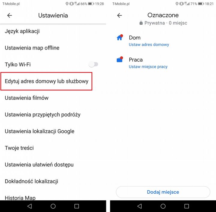 Tę funkcję dostosujesz w sekcji: Ustawienia > Edytuj adres domowy lub służbowy.