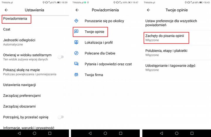 Na urządzeniach z Androidem domyślnie włączone są powiadomienia przypominające o napisaniu opinii po odwiedzeniu danego miejsca. Jeśli uważasz je za irytujące, możesz je wyłączyć.