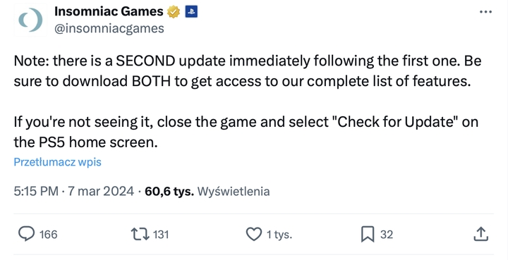 Przy okazji aktualizacji deweloperzy ze studia Insomniac Games wypuścili także trailer wersji GOTY Marvel’s Spider-Mana 2, który obejrzycie poniżej:
